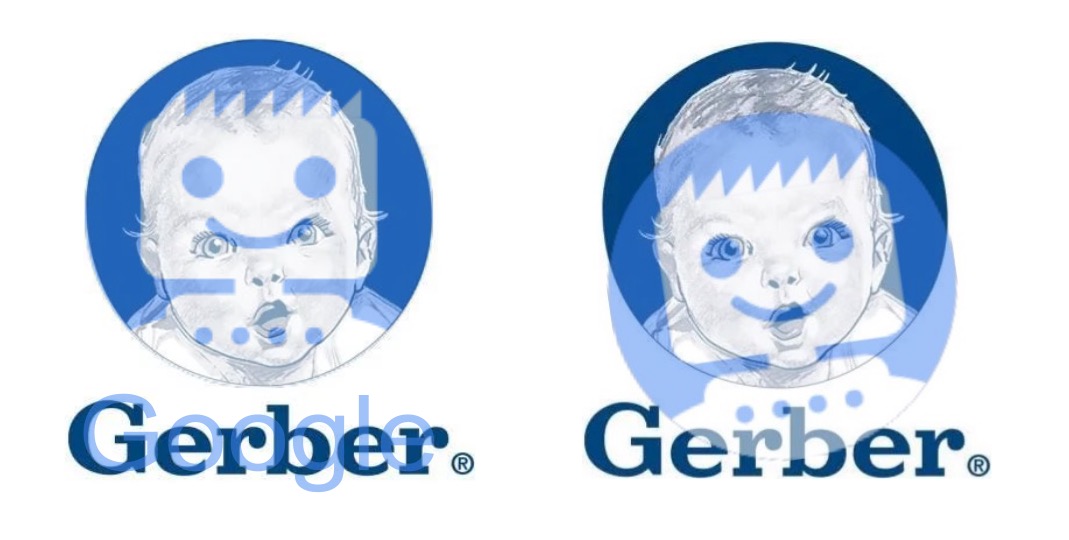 Was it intentional? Maybe Google purposely made their logo similar to Gerber, trying to make us subconsciously make the connection to a trustworthy safe brand 71 years its senior.